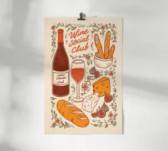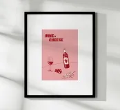 Poster "Vino e formaggio"! Un'illustrazione classica e minimalista nei ricchi toni del bordeaux e del rosso, con una bottiglia di vino rosso, un bicchiere pieno, uno spicchio di formaggio e un grappolo d'uva. Questo elegante disegno è perfetto per aggiungere un tocco di raffinatezza e fascino gastronomico alla cucina, alla sala da pranzo o al bar. L'estetica monocromatica rossa è chic e moderna. Un'opera d'arte da parete ideale per chi apprezza il vino e il divertimento! Vino, Formaggio, Vino rosso, Uva, Arredo cucina, Sala da pranzo, Carrello bar, Food art, minimalista, line art, rosso, bordeaux, sofisticato, divertente, illu