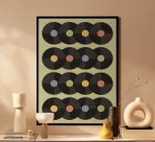 Questa opera d'arte combina arte e musica, utilizzando dischi d'epoca per creare una composizione di grande effetto. L'artista (kathrinmay) ha disposto con cura i dischi per creare una superficie dinamica che evoca la nostalgia. Perfetto per gli amanti della musica, per gli appassionati di vintage e per chi cerca un pezzo unico per la casa o l'ufficio.