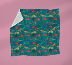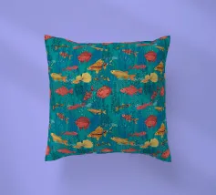 Vari pesci e piante acquatiche disegnati in Illustrator, motivo vettoriale senza soluzione di continuità