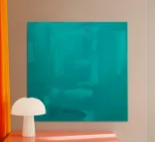 Un'opera d'arte astratta di colore turchese vibrante mostra una serie di pennellate e texture, creando un'atmosfera rilassante e sofisticata adatta agli spazi contemporanei.