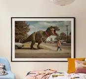 Una scena surreale e cinematografica che trasforma ciò che è familiare in qualcosa di silenziosamente assurdo. Una strada di periferia diventa il palcoscenico di un momento impossibile, mentre un rituale quotidiano si svolge con un compagno straordinario. La postura calma e naturale dei personaggi contrasta nettamente con le dimensioni e la presenza della creatura, creando una tensione visiva che appare allo stesso tempo divertente, inquietante e stranamente tenera.