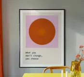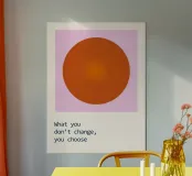 Moderno, minimalista e stimolante: questo poster combina una forma astratta in intense tonalità di blu con il messaggio "Quello che non cambi, lo scegli". Perfetto per chi ama l'arte elegante e le parole ispiratrici. Una dichiarazione per qualsiasi parete!
