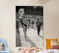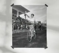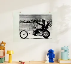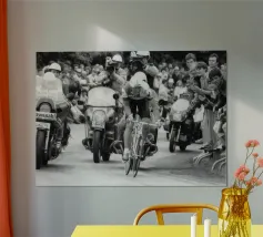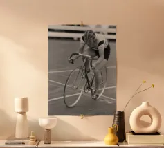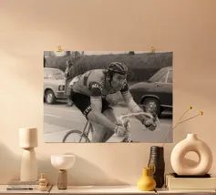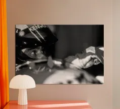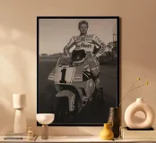 Stampa artistica incorniciata in legno che ritrae Wayne Rainey su moto da corsa, un'icona del motociclismo vintage. Perfetta come decorazione per camera da letto, ufficio o soggiorno, ideale per appassionati di moto e amanti dello stile retrò. Materiali di alta qualità garantiscono durata e autenticità del design in bianco e nero.