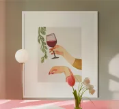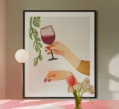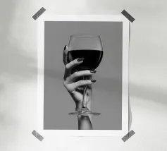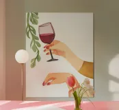 Bicchiere da vino dipinto con una mano. Generato con AI (Canva).