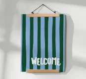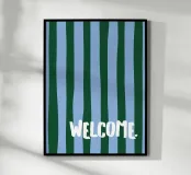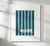 Aggiungi un tocco di ospitalità al tuo ingresso con il poster "Welcome." di moDeern. Questo design accattivante in toni blu e verdi è ideale per creare un'atmosfera accogliente in ogni casa.