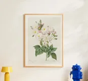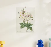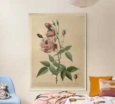 illustrazione botanica vintage della collezione Les Roses di Pierre-Joseph Redouté Questa delicata illustrazione di un'incantevole rosa mostra petali morbidi e aggraziati in tonalità delicate, che emanano eleganza e fascino. Gli intricati dettagli delle foglie e le sottili ombreggiature danno vita al fiore, rendendolo una perfetta rappresentazione di bellezza e romanticismo. Ideale per gli amanti della natura, questa opera d'arte cattura il fascino senza tempo dell'arte floreale e dell'eleganza botanica.