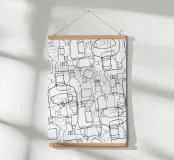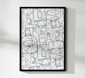 Il design presenta un'illustrazione lineare e minimalista di diverse bottiglie in uno stile astratto e giocoso. L'estetica in bianco e nero si adatta perfettamente agli interni moderni o di ispirazione scandinava e aggiunge un tocco creativo e contemporaneo a qualsiasi ambiente. Ideale per cucine, bar o zone living che cercano qualcosa di speciale.