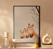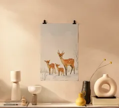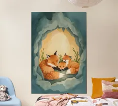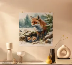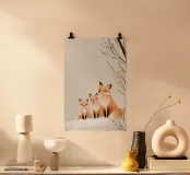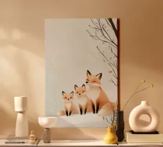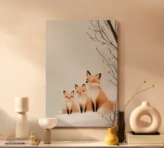 Portate un tocco di fascino struggente sulle vostre pareti con questa dolce illustrazione di una famiglia di volpi sotto una leggera nevicata. Questo pezzo è perfetto per creare un'atmosfera accogliente e pacifica in una nursery, nella stanza di un bambino o come decorazione invernale stagionale per la vostra casa. Lo stile artistico morbido e delicato vi farà sicuramente sorridere.