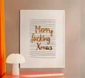 "Merry f***ing Xmas" è il Natale senza filtro: onesto, sfacciato e dorato. Questo disegno tipografico scritto a mano dall'artista tedesco Froilein Juno gioca con il contrasto tra l'eleganza festiva e l'ironica onestà. Le lettere dorate, le linee chiare e il layout minimalista ne fanno un pezzo moderno per tutti coloro che celebrano le festività con una strizzatina d'occhio. Perfetto per gli amanti del design con senso dell'umorismo e stile.
