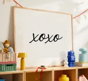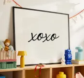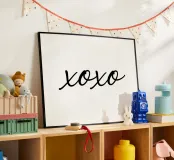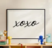 Questa stampa artistica incorniciata in legno presenta la scritta elegante "xoxo" in stile calligrafico minimalista. Perfetta come decorazione murale per la camera da letto o il soggiorno, aggiunge un tocco romantico e moderno agli spazi domestici. Realizzata con materiali di alta qualità secondo standard europei, è una scelta ottima come regalo per anniversari o San Valentino.