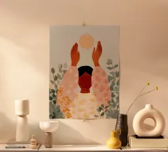 Porta la serenità del yoga nella tua casa con questa elegante stampa d'arte in legno incorniciata. L'opera, caratterizzata da una figura femminile che pratica yoga su uno sfondo dorato, è perfetta per stanze come il soggiorno o lo studio, creando un'atmosfera di calma e meditazione.