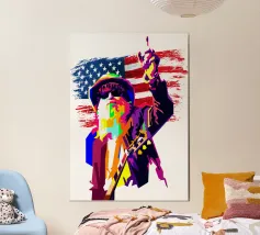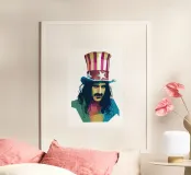 Zappa in stile WPAP è ritratto con forme geometriche audaci e colori vibranti e contrastanti, che catturano il suo spirito eccentrico e ribelle. I tratti distintivi del suo viso, come i folti baffi, la macchia dell'anima e lo sguardo intenso, sono trasformati in una composizione astratta di grande impatto. Le linee spigolose e le dinamiche transizioni di colore riflettono il suo approccio avanguardistico alla musica e la sua impavida creatività, incarnando l'essenza della sua arte anticonvenzionale.