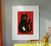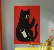 Questo gatto impertinente dice quello che pensa, con uno sguardo a metà tra l'indifferenza e la superiorità. Lo stile minimalista, i colori vivaci e l'iconico dito medio fanno di questo poster la decorazione antistress per eccellenza. Perfetto per l'ufficio, l'appartamento, lo studio o come regalo divertente per chiunque abbia un debole per l'onestà ironica e il crudo umorismo felino.