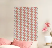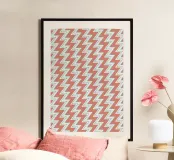 Quest'opera d'arte è un motivo a zigzag senza cuciture nei colori corallo e verde pesca. Questo disegno unico fonde un'estetica moderna con un fascino retrò. Perfetto per aggiungere un tocco di stile all'arredamento o agli accessori, dona un'atmosfera vivace e sofisticata a qualsiasi spazio. Date un'occhiata e rinfrescate il vostro look!