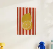 Aggiungete un pizzico di allegria e di fascino al vostro spazio con questa accattivante opera d'arte da parete a forma di limone.