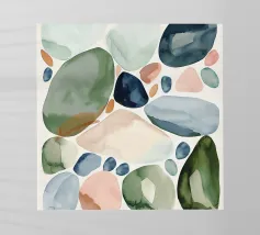 Questo motivo acquerellato minimalista presenta forme organiche simili a ciottoli delicatamente sparse in caldi toni beige e verde oliva tenue. La texture dipinta a mano e l'arioso sfondo bianco creano un'estetica calma e moderna ispirata alla natura e alla semplicità scandinava. Perfetto per interni contemporanei, questo design aggiunge un carattere sottile senza ingombrare visivamente. Ideale per soggiorni, camere da letto, uffici e pareti di gallerie eleganti che cercano un look equilibrato e naturale.