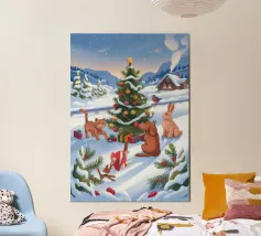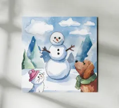 Questa opera d'arte raffigura una nuvola dall'aspetto scontroso con una bolla di pensiero contenente un uccello e un orso. La scena, umoristica e fantasiosa, è ambientata su un morbido sfondo blu.