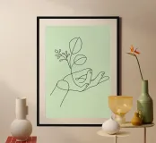 Scopri la stampa d'arte in legno con cornice 'Full inside' di AESTHETIC VIBES by Isabel. Questo design minimalista e botanico porta un tocco di eleganza e serenità in ogni ambiente. Ideale per trasformare il tuo soggiorno, studio o camera da letto con un'atmosfera rilassante.
