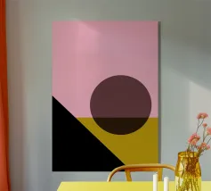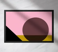 Abbracciate l'estetica del design moderno con questa sorprendente stampa d'arte astratta geometrica. Caratterizzata da un'accattivante composizione con blocchi di colore rosa, giallo/arancio e nero, separati da audaci linee diagonali. Una grande forma ovale rosso scuro/marrone è sovrapposta a queste sezioni. Questa opera d'arte utilizza forme geometriche semplici e forti contrasti di colore per creare un pezzo astratto visivamente coinvolgente, esplorando l'interazione di forme e tonalità. Questo file di arte digitale di alta qualità vanta una straordinaria risoluzione di 7000x5000 pixel a 300 dpi, che garantisce dettagli e chiarezza eccezionali per la stampa del poster. Un'opera perfetta