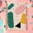 Un motivo semplice e pulito di forme astratte e arrotondate in una giocosa combinazione di colori blu, arancione e terracotta su uno sfondo beige.
