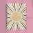Linee radianti in tonalità terrose come il verde, il marrone e l'arancione si estendono da un cerchio centrale, creando un effetto a raggiera. Il design è caratterizzato da un'estetica retrò con motivi simmetrici e una tavolozza di colori rilassanti.