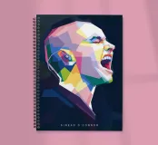 Un ritratto vibrante e geometrico di Sinead O'Connor in stile WPAP, caratterizzato da forme audaci e angolari e da un'impressionante gamma di colori vivaci e contrastanti. L'opera cattura i suoi tratti iconici, come la testa rasata, gli occhi penetranti e la forte espressione facciale, utilizzando blocchi di colore nitidi e frammentati. La composizione enfatizza la profondità e l'emozione mantenendo l'estetica pop-art cubista distintiva di WPAP, creando un tributo visivamente dinamico e moderno alla leggendaria cantante.