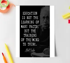 Albert Einstein davanti ai suoi appunti di genio. Una caricatura della straordinaria mente scientifica.