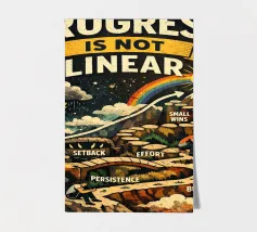 Una composizione astratta di onde che simboleggia la crescita, le battute d'arresto e lo slancio. I morbidi colori pastello scorrono in modo organico, riflettendo la realtà che il progresso si muove in curve, non in linee rette. Un promemoria visivo calmo ma potente per fidarsi del processo, abbracciare il cambiamento e continuare ad andare avanti al proprio ritmo.