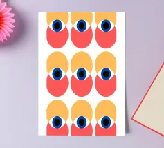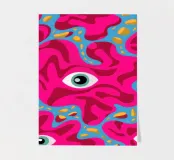 Un disegno ipnotico e psichedelico con occhi ripetuti in mezzo a forme vorticose e organiche di colore rosa e magenta. Questa opera d'arte audace e surreale è ipnotica e intensamente energetica.