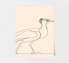 A pencil drawing in coloured pencils of a greater roadrunner. You can see the bird from the side, so that its long tail is nicely in the picture.