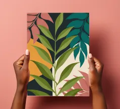 Un'illustrazione pop art con colori vivaci e forme organiche ispirate a Henri Matisse. Un pezzo giocoso ed espressivo con un tocco moderno.