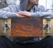 Una reinterpretazione astratta del cielo dell'alba, trasformata in motivi circolari a zig-zag nei caldi toni del rosso, dell'arancio e del grigio. Le tonalità dinamiche creano un senso di movimento ed energia, rendendola perfetta come stampa murale audace per soggiorni, uffici o spazi creativi.
