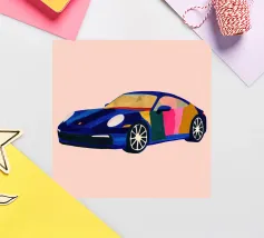 L'immagine mostra tre auto retro stilizzate, colorate e dal design grafico. Ogni auto presenta un motivo unico, da punti a semplici aree di colore. I colori vivaci e le linee pulite conferiscono all'immagine un'estetica giocosa e illustrativa, che ricorda la pop art moderna o i disegni grafici semplificati.