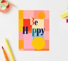 Minimal typographic artwork with bold color stripes and a simple word. Clean, playful composition.