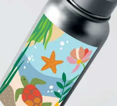 Adesivi realizzati in film PP/PET con laminazione protettiva e diverse tipologie di superficie.
