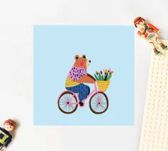 "Panda Playing Bike and Balloon" è un'illustrazione colorata e adorabile che raffigura un panda che si diverte ad andare in bicicletta trasportando un palloncino.
