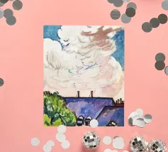 Le nuvole che si stendono sulla città di Barcellona sono dinamiche. Guardando dal tetto del mio appartamento, posso vedere il mare scintillante oltre la città sulla destra. Davanti a me si apre un mondo diverso che non si può vedere dalla strada. Questo è un disegno che ho fatto dal vivo.