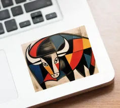 Una rappresentazione astratta e imponente della testa di un toro, costruita con piani sovrapposti, texture consumate e un'intensa profondità tonale. Sullo sfondo di un potente campo rosso, la forma appare monumentale e simbolica, evocando forza, determinazione e presenza grezza. Le superfici frammentate e i dettagli simili a collage aggiungono complessità, conferendo all'opera un senso di storia e peso sotto il suo aspetto audace.
