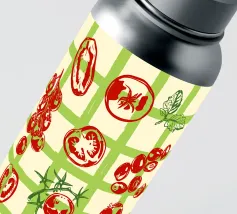 The cheerful and colorful design features a fresh and appetizing tomato pattern.