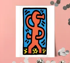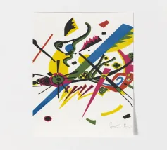Questo arazzo altamente astratto di Fernand Léger mostra il suo caratteristico uso di forti contorni neri e di audaci colori primari e secondari. La composizione presenta forme spesse e sinuose che ricordano la chiave di violino o la notazione musicale, contrapposte a blocchi di colore e a motivi bianchi simili a mattoni. L'opera riflette l'esplorazione di Léger, durata tutta la vita, della forma pura e del colore.