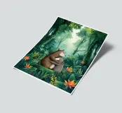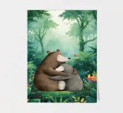 Una scena toccante di madre orsa che abbraccia il suo cucciolo in un ambiente vibrante della giungla. Questo delicato disegno di animali selvatici dona calore e un'atmosfera giocosa di foresta alle camere dei bambini o agli spazi ispirati alla natura.