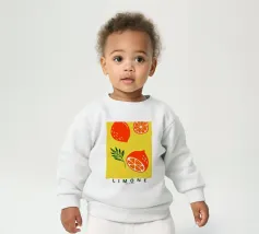 Le nostre felpe per neonati sono realizzate all'85% in cotone biologico ed etico e al 15% in poliestere riciclato.
