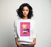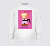 Illustrazione grafica di una caffettiera in azione, su uno sfondo rosa intenso. La rappresentazione moderna e stilizzata è un perfetto omaggio all'arte e al rituale del caffè speciale.