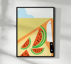 Trovate ispirazione per uno stile di vita sano con questa illustrazione. Angurie fresche e gialle sono disposte in modo splendido, mostrando la loro freschezza e il loro valore nutrizionale.