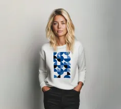 Questo design ispirato al Bauhaus è caratterizzato da forme geometriche chiare in un blu armonioso su uno sfondo neutro. La combinazione di semicerchi e quadrati crea una composizione dinamica ma minimalista. Questo disegno è perfetto per gli amanti dell'arte moderna che desiderano creare accenti semplici ed eleganti nella propria casa. Ideale per murales, tazze, cuscini e molto altro.