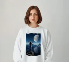 Vivete la magia del viaggio e dei cieli notturni con questa suggestiva opera d'arte che raffigura una mano che tocca delicatamente il finestrino di un aereo e si affaccia su dune desertiche incandescenti. Una luna crescente brilla in un cielo blu profondo pieno di stelle, creando una miscela serena di vagabondaggio e meraviglia. Le calde sabbie dorate contrastano magnificamente con i toni freddi della notte, catturando la sensazione di solitudine, riflessione e sogno al di sopra del mondo. Perfetto per gli amanti dei viaggi, per i minimalisti e per gli appassionati di arte cinematografica e sognante.