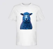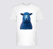 Un'immagine sorprendente di una pecora blu surreale con lana strutturata, che si staglia su uno sfondo rosa brillante. L'audace contrasto cromatico e la composizione minimalista creano un'estetica giocosa e moderna.