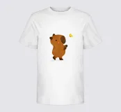 Simpatico disegno di capibara che guarda una dolce farfalla gialla