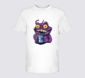 A whimsical purple monster with sharp teeth, bright yellow eyes, and a mischievous grin clutching a blue coffee mug. The playful cartoon style adds a fun, quirky vibe perfect for humorous or caffeine-themed projects.