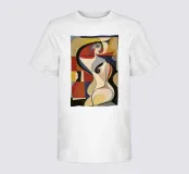 Una rappresentazione astratta di una figura con curve eleganti e una combinazione di colori sofisticata. Il dipinto evidenzia la bellezza della forma umana.